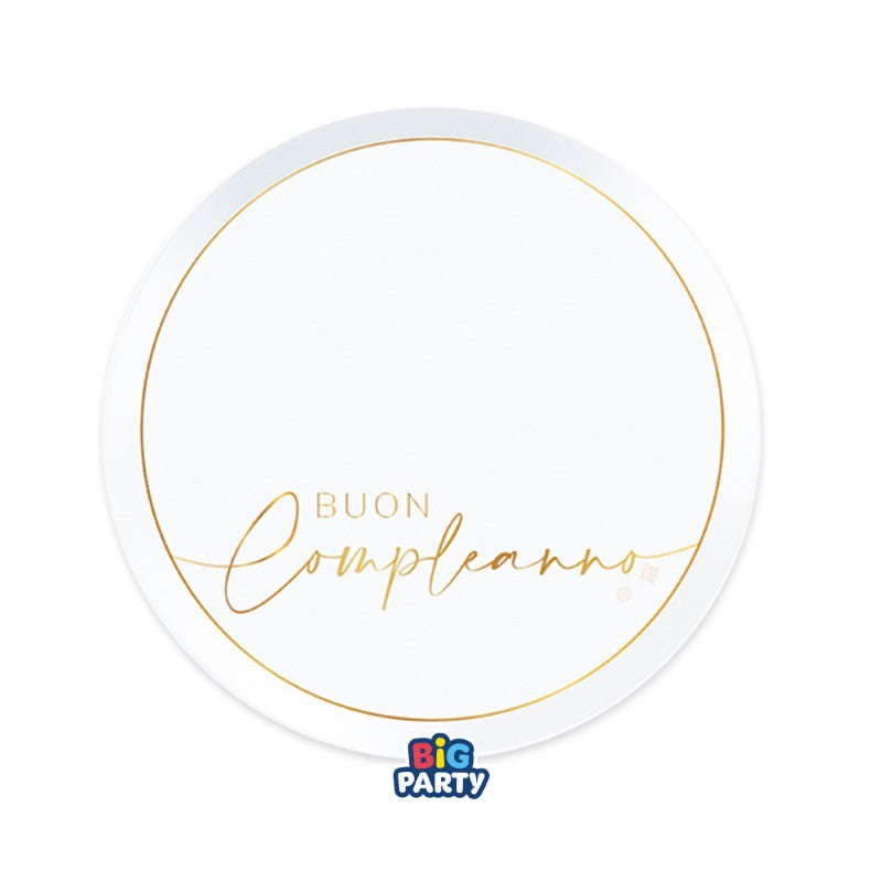 Big Party Paper Plates Happy Birthday Gold D 18 cm White Gold