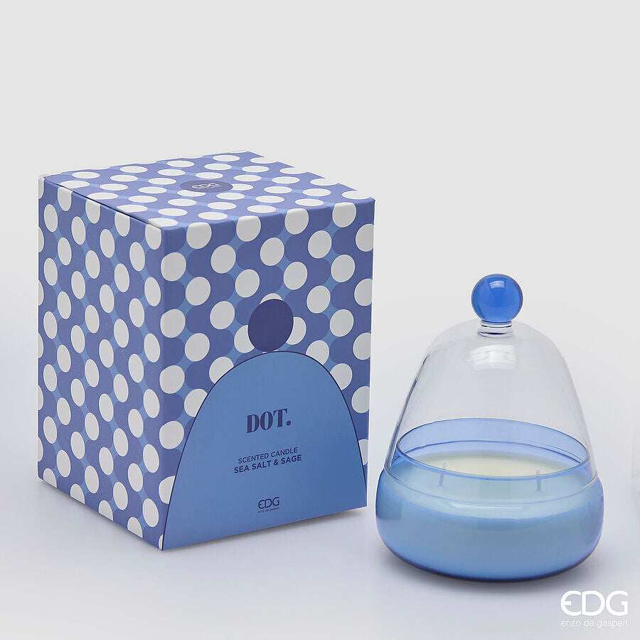 La candela profumata DOT a cupola EDG Enzo De Gasperi unisce estetica contemporanea e profumazione raffinata, diventando un vero complemento d’arredo per la casa. Il contenitore in vetro con cupola trasparente, dal design morbido e iconico, è impreziosito da una tonalità azzurra elegante che richiama freschezza e armonia.