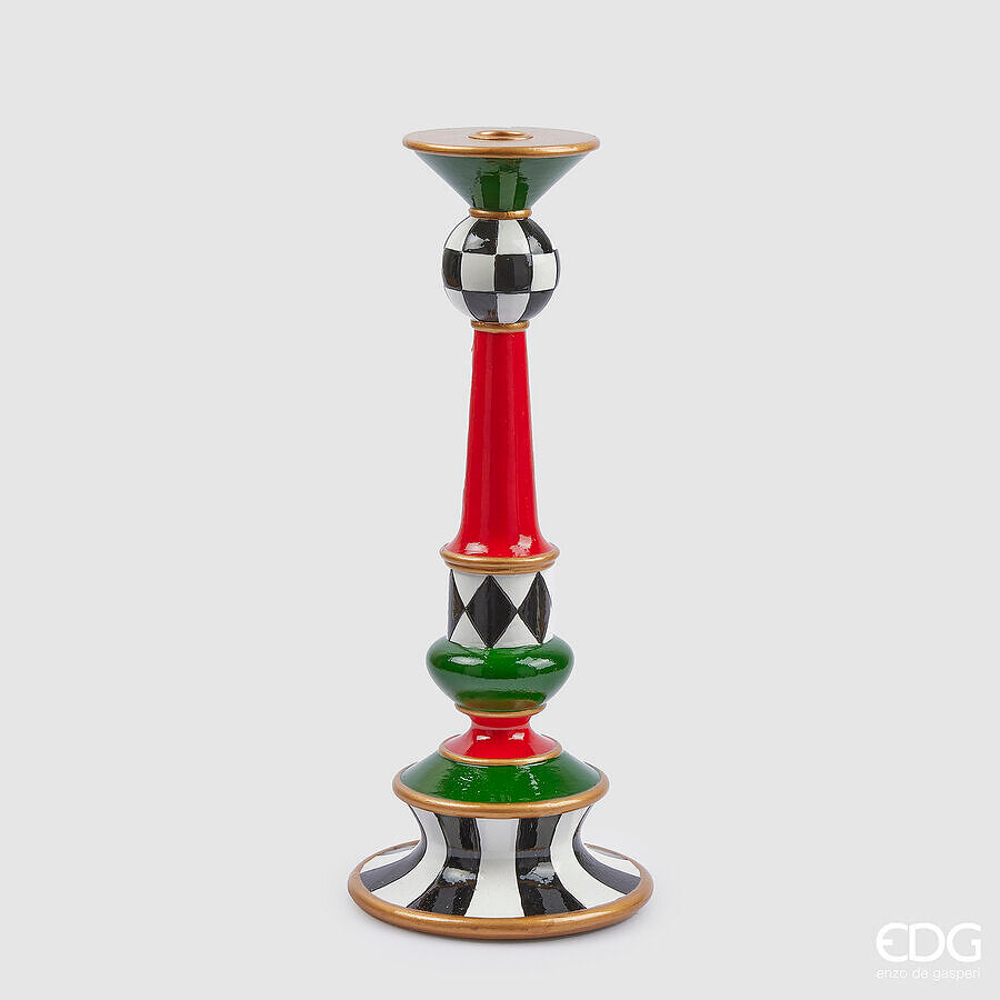 EDG Enzo De Gasperi Christmas Candle Holder Chess Pattern H 35 Cm D 14 Cm White Black