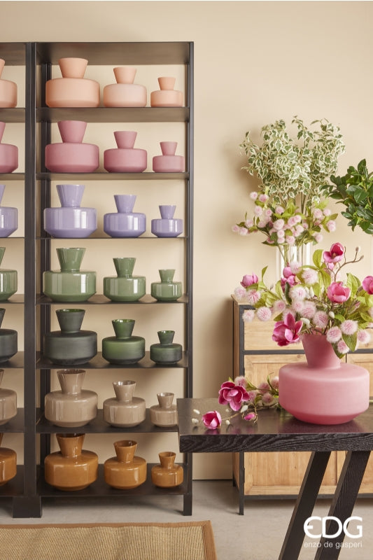 EDG Enzo De Gasperi Round Vase with Neck H 15 Cm D 16 Cm Waterproof Hazelnut