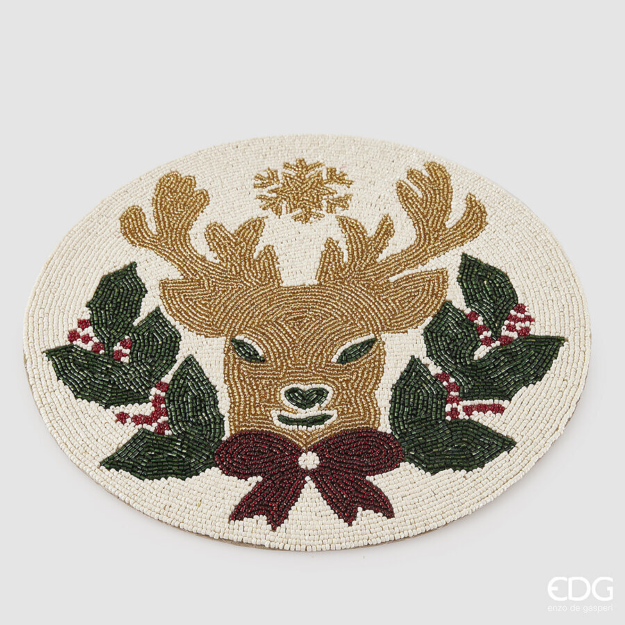 EDG Enzo De Gasperi Reindeer Placemat with Beads, Round, Christmas, D 36 cm, Multicolor