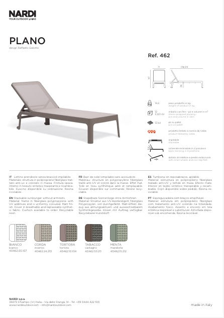 Il lettino prendisole Nardi Plano è la soluzione ideale per arredare piscine, giardini, terrazze, stabilimenti balneari e strutture ricettive con uno stile moderno, essenziale e professionale. Le linee pulite e armoniose si uniscono a una superficie ampia e confortevole, pensata per garantire il massimo relax all’aperto.