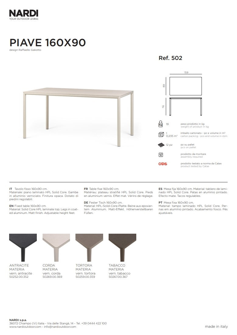 Nardi Piave 160 x 90 Rectangular Table Painted Anthracite Lamin Materia Anthracite is backordered and will ship as soon as it is back in stock.