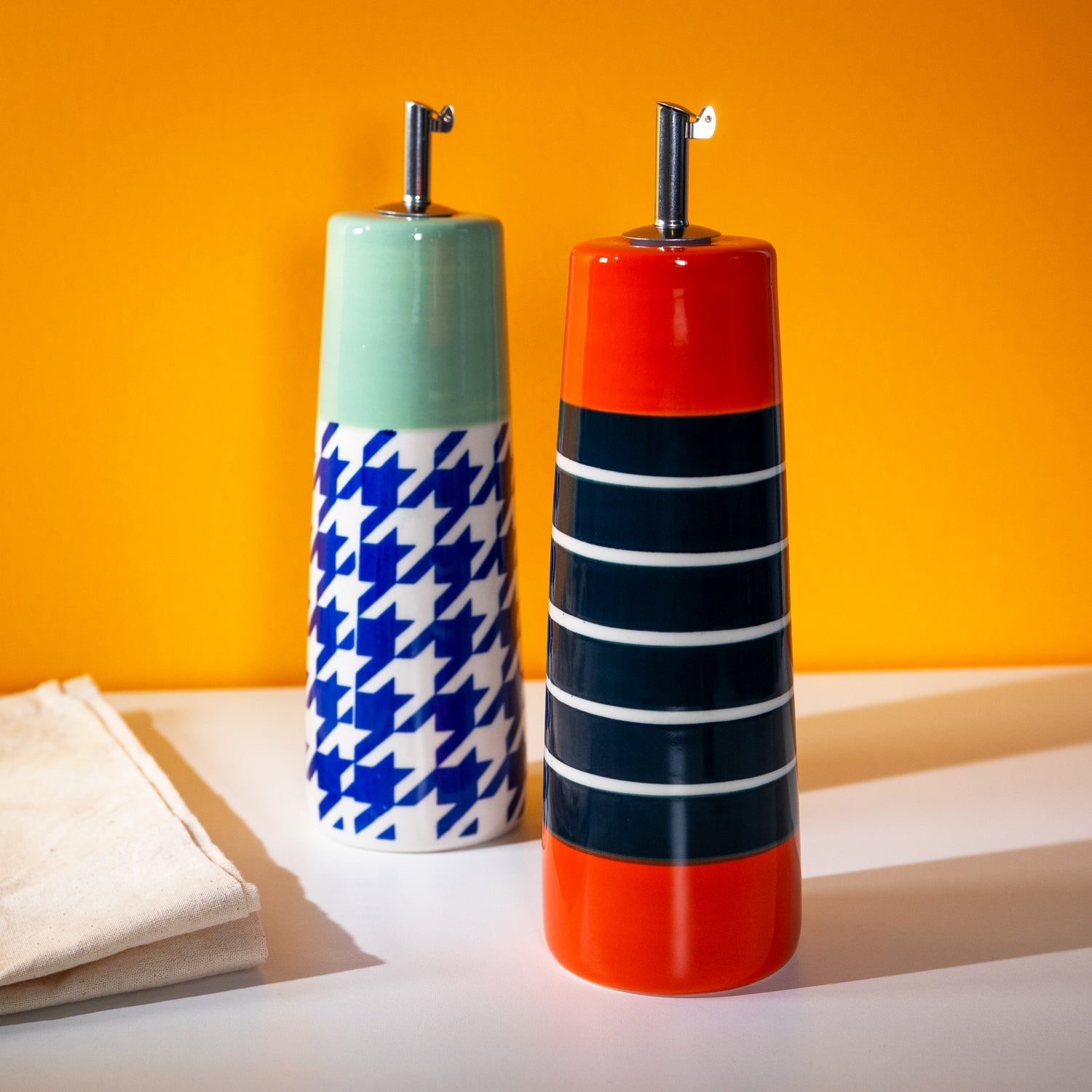 The WD Lifestyle oil and vinegar dispenser in stoneware combines functionality and contemporary design, becoming a distinctive decorative element for the kitchen and table. Made from high-quality glazed stoneware, it is durable, stable, and ideal for preserving oil or vinegar, protecting them from light.