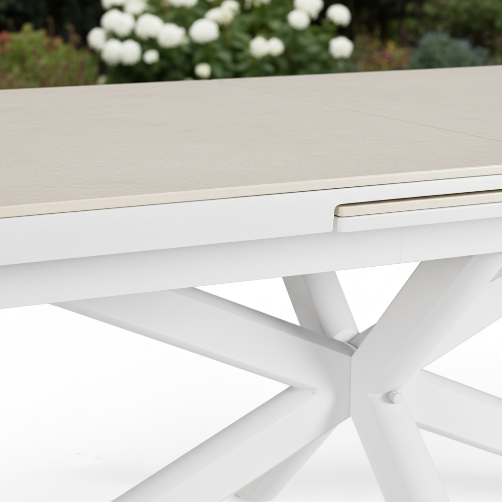 The Bizzotto Pascal Extendable Table in a White finish is an elegant, functional, and high-performance solution for furnishing gardens, terraces, verandas, and outdoor spaces. The modern and clean design is combined with high-quality materials, engineered to ensure resistance, stability, and durability over time, even under intensive use.