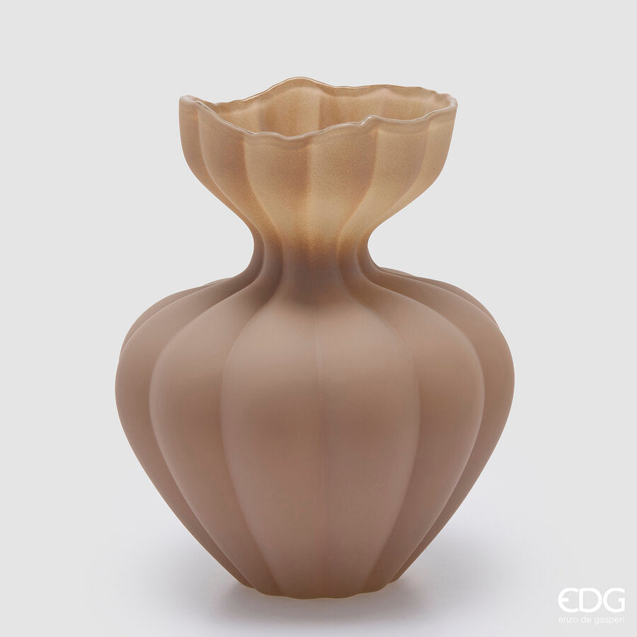 EDG Enzo De Gasperi – Vaso Flow Sinuoso in Vetro Waterproof Marrone Chiaro H 32 cm D 26 cm