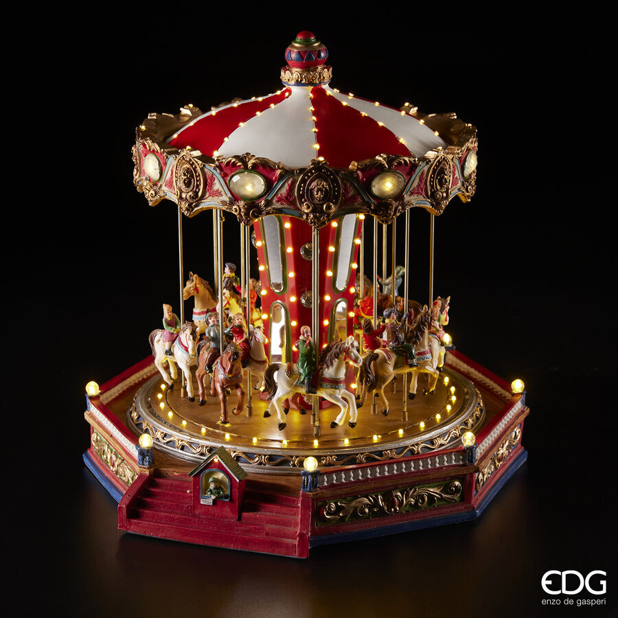 EDG Enzo De Gasperi Christmas Carousel Carousel with LED H 35 Cm D 36 Cm Lights, Music and Movement is backordered and will ship as soon as it is back in stock.