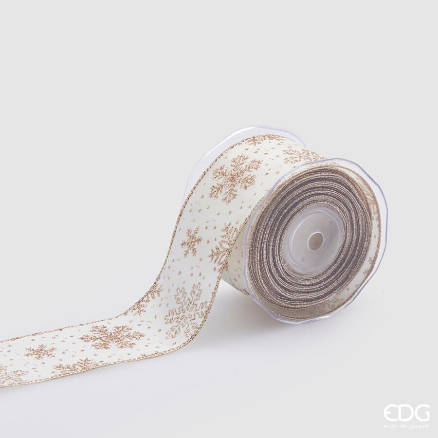 EDG Enzo De Gasperi Christmas Ribbon Snowflakes H 65 Mm 10 Mt Ivory Gold