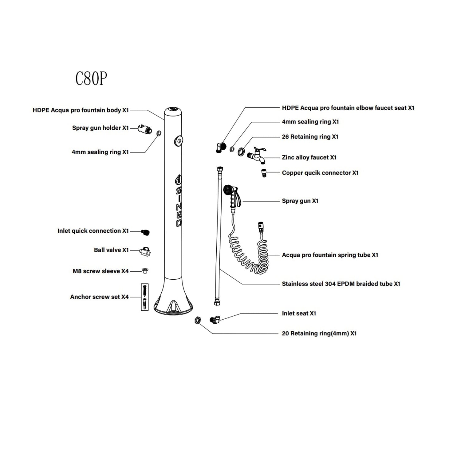 At the great request of our customers, the dove-colored outdoor fountain SINED has been created, complete with metal support for garden hose and 7.5 m external flexible hose with spray gun 8 different jets. Predisposition with quick couplings for garden hose.