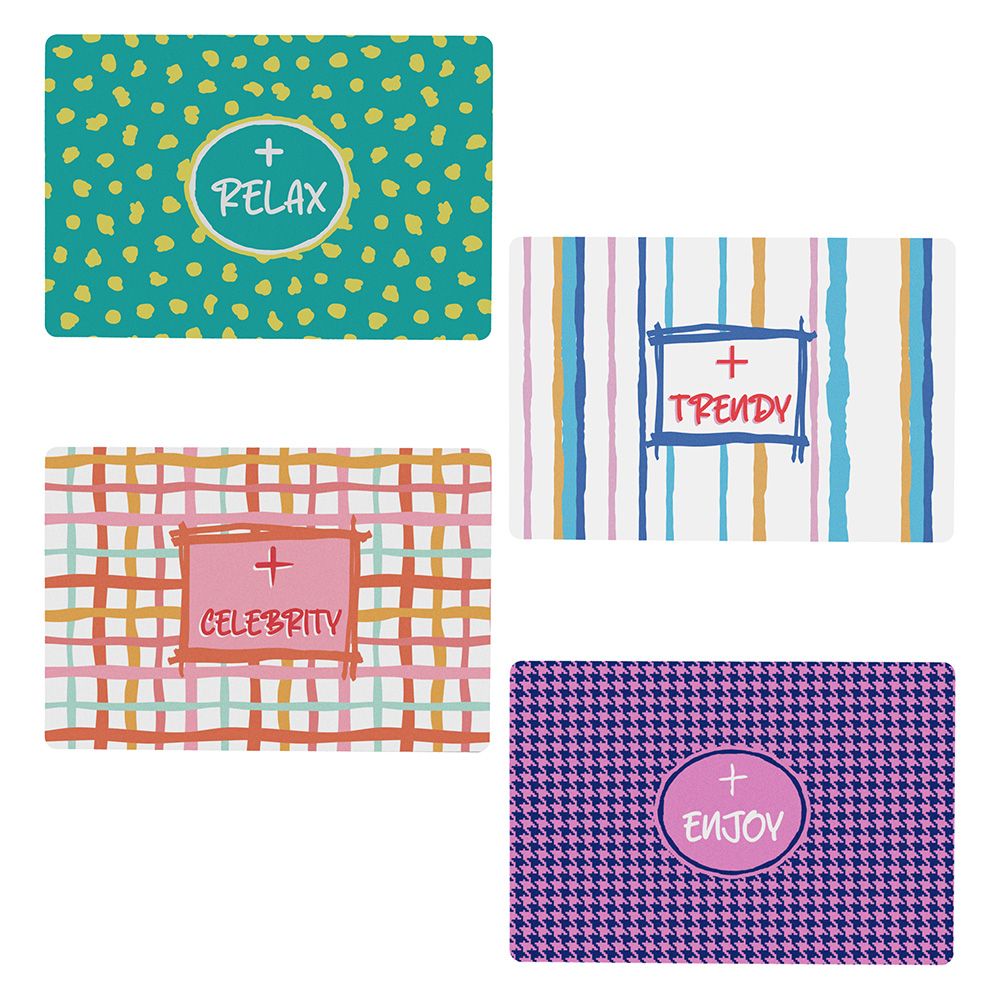 The Tognana Glamour Good Vibes placemat set is designed to bring color and personality to your table. The set includes 4 placemats with modern and motivational graphics – Relax, Trendy, Celebrity, Enjoy – featuring vibrant patterns and a contemporary style, perfect for an informal and creative table setting.