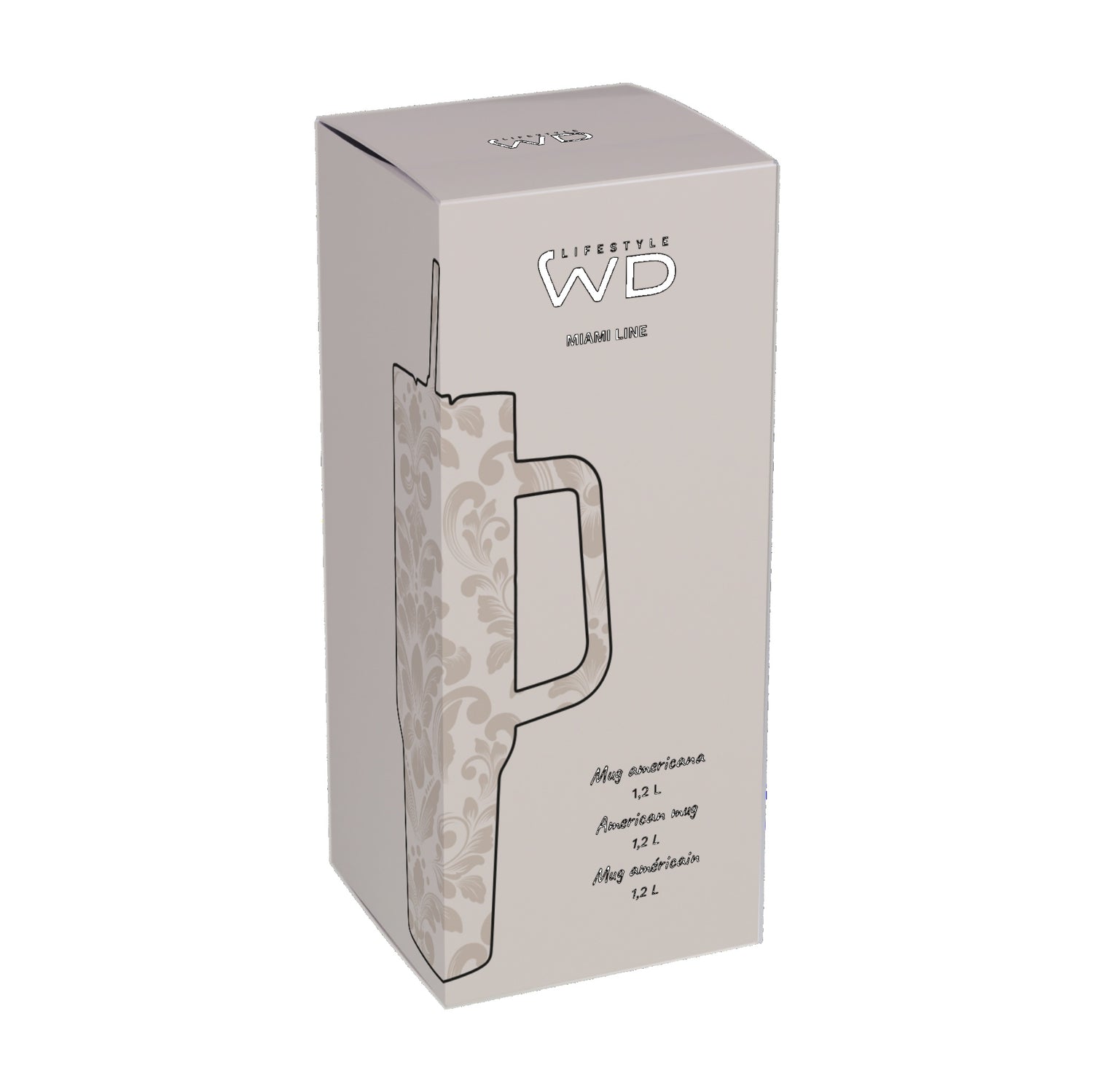 Elegante, capiente e pensata per l’uso quotidiano, la Mug Americana WD LifeStyle in acciaio inox da 1,2 litri con decoro damascato unisce design raffinato e massima funzionalità. Il motivo damascato tono su tono dona uno stile sofisticato e senza tempo, perfetto per chi desidera un accessorio pratico ma curato nei dettagli.